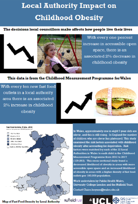 My name is Claire Beynon and I am a Specialty Registrar in Public Health in Wales. I am passionate about reducing childhood obesity in the UK and wanted to explore how the wider determinants of health impact childhood obesity in children after accounting for deprivation.