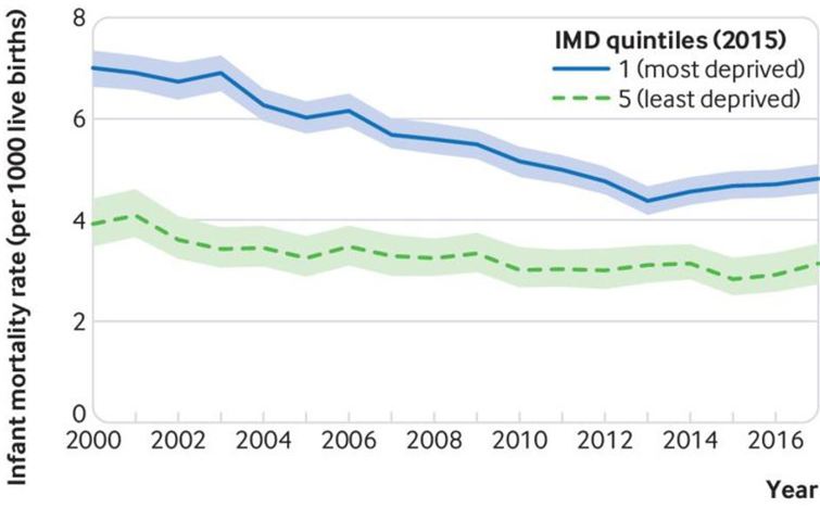 In a damning editorial in the BMJ David Taylor-Robinson and colleagues described our child health unravelling. The rise in infant deaths and the widening of inequalities between rich and poor is alarming and should be a wakeup call that not all is well in the public health world. Infant mortality is this most fundamental of public health measures and a marker for a new public health emergency. More babies dying should not happen in a rich country, but it is. Our infant death rate is now higher than Cuba’s. It cannot be attributed to worsening behaviours, or poorer treatment; the causes are upstream in the advance of child poverty and destitution and the worsening conditions and services in our poorer neighbourhoods.