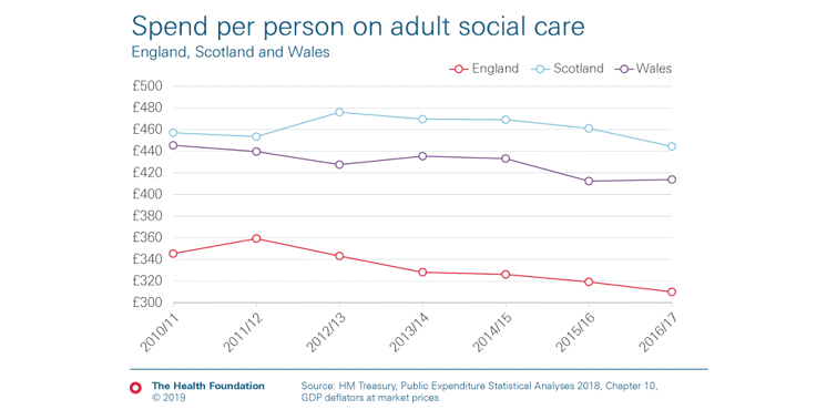 Marmot also highlighted a need for tax policies reducing inequalities in income. The poor pay more proportionately, in tax than do the rich. Reform of tax systems and the overall national and local provisions for taxation need urgent review. As major corporates and the super-rich avoid tax, the case for property, land and location taxes become more compelling. Danny Dorling’s book ‘All that is solid’ describes the nightmare of UK housing policy and some of the remedies; buried in them, fair and proportionate property tax for high value properties. England spends less on social care per person than Scotland and Wales, and the gap has widened since 2010/11. Today, England spends £310 compared to £445 in Scotland (43% more) and £414 in Wales (33% more). For many eminent public health authorities this is a driver of inequalities in health and the observed reductions in life expectancy.