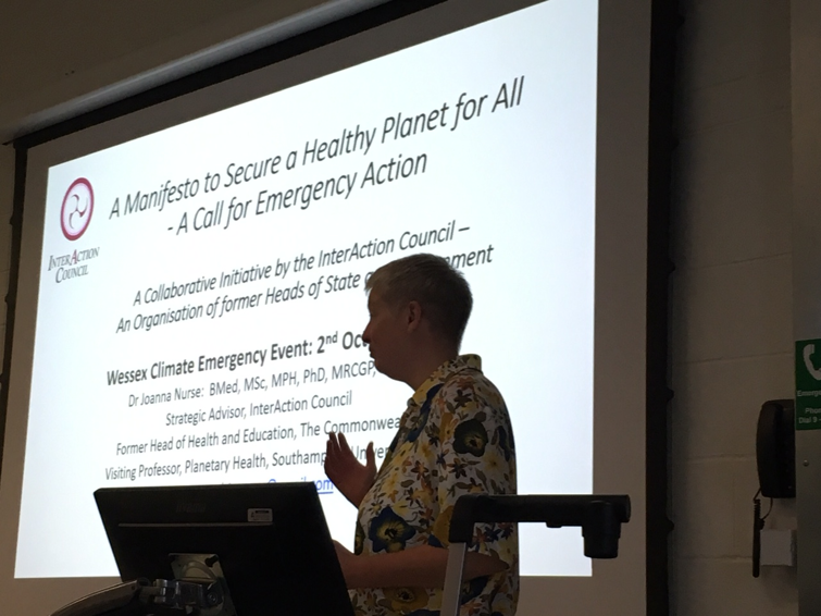 Following the global launch of the Manifesto to Secure a Healthy Planet for All, Professor Jo Nurse gave this warning at a recent event in Wessex to support local councils in taking emergency action on climate change.